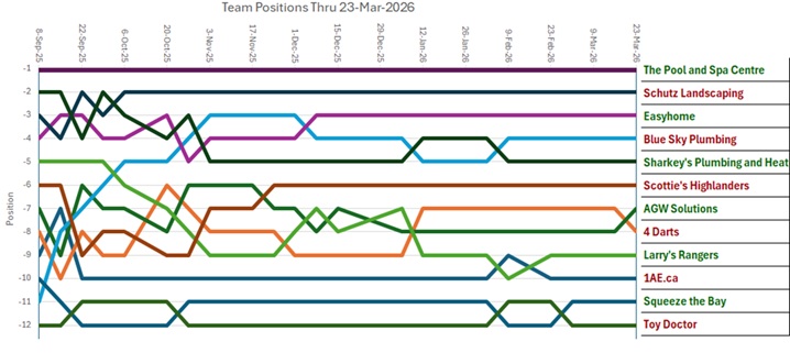Schedule for the next 5 weeks has been added to the schedule page, and new stats are up. Stats will continue to count through the playdown weeks.