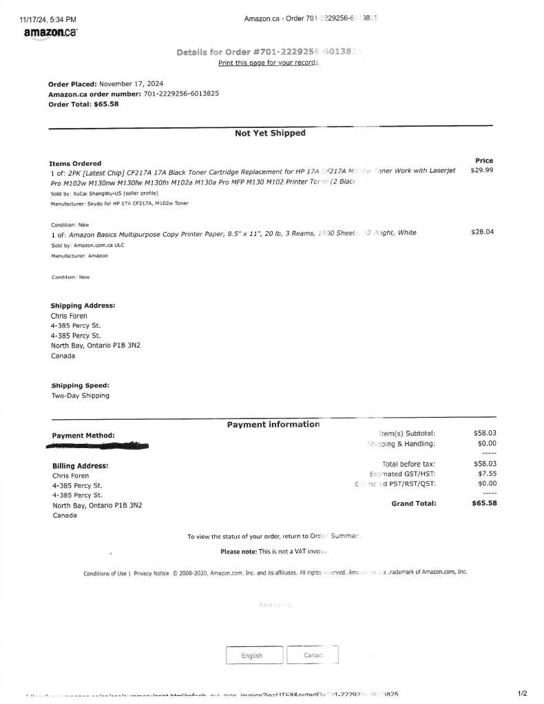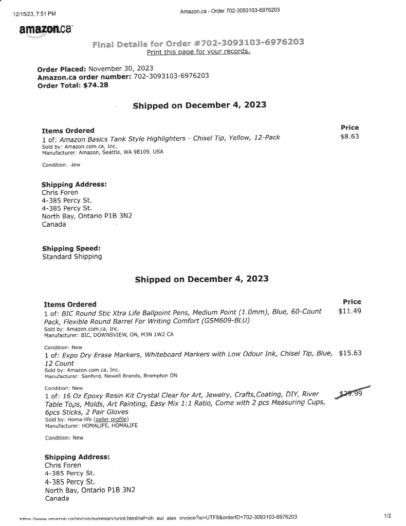 Amazon – Supplies – Nov 17 2024