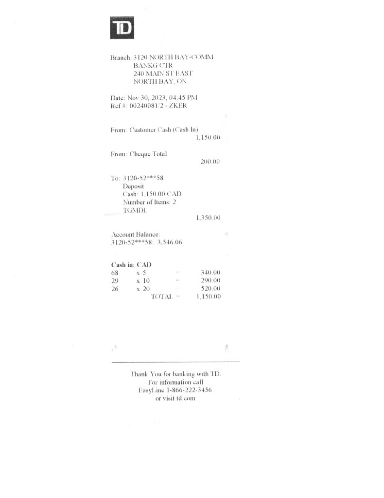 Deposit Slip – Nov 18 2024