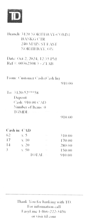 Deposit Slip – Mar 24 2025