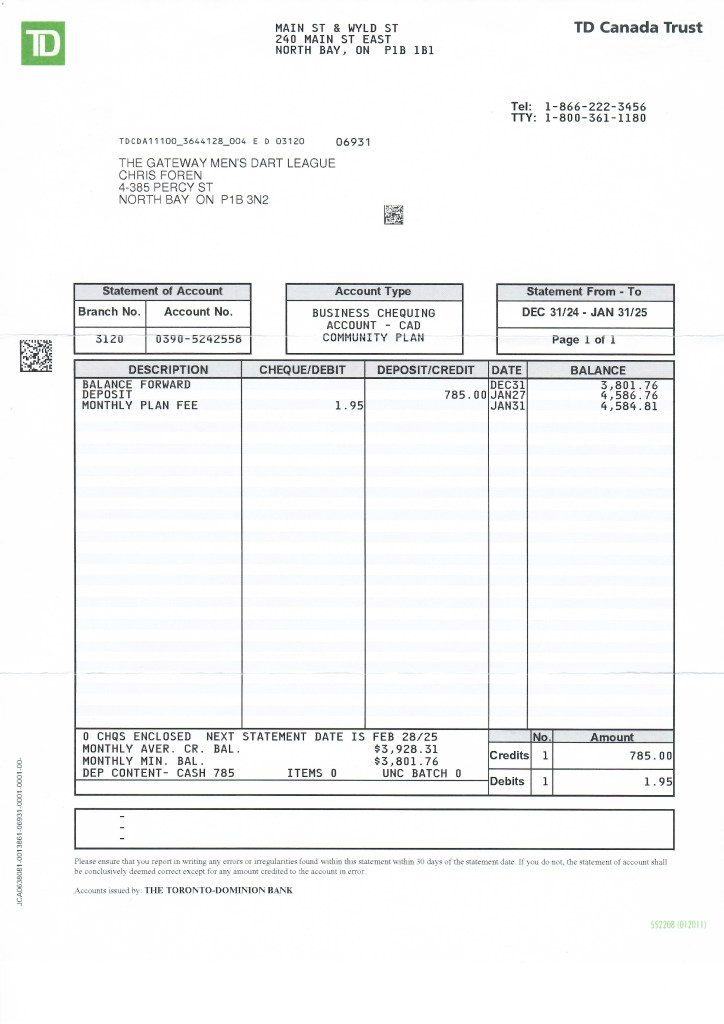 Bank Statement – 31-Jan-2025