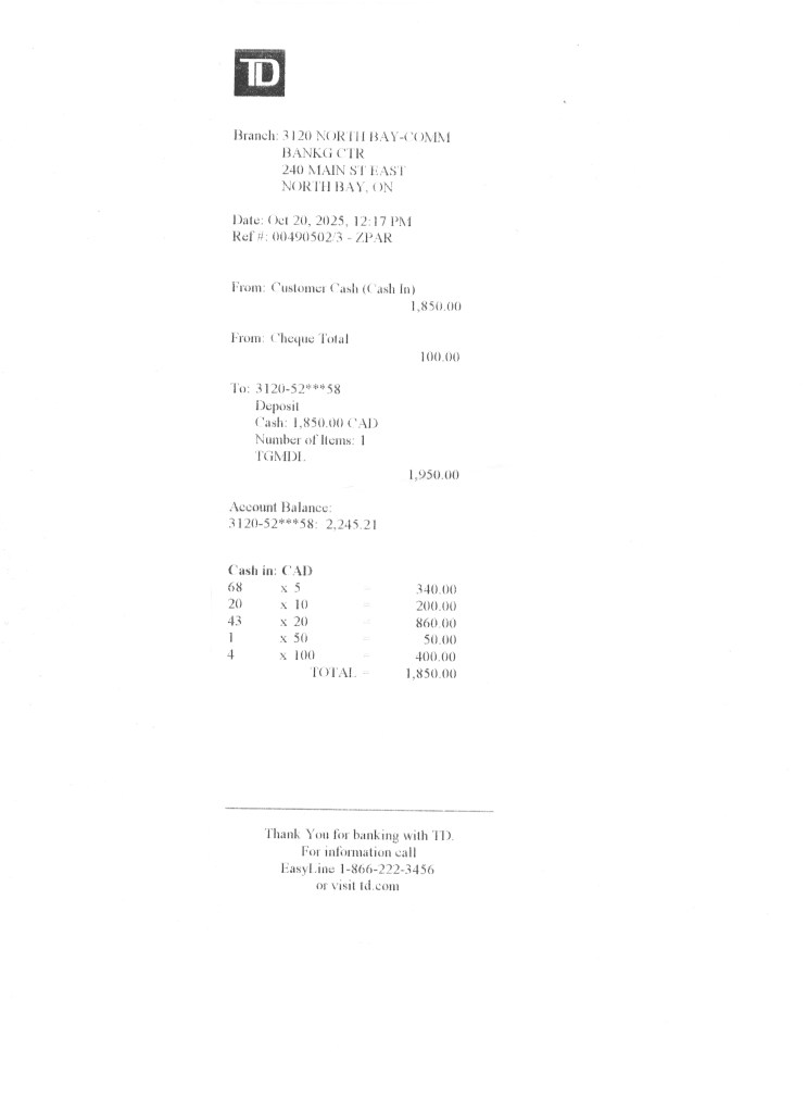 Deposit Slip – Oct 20 2025