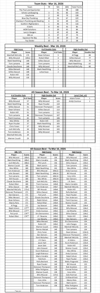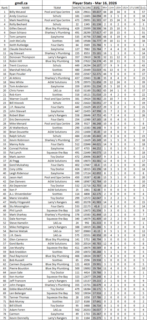 Stats After night of 16-Mar-2026: Previous nights from this season: 9-Mar-2026 2-Mar-2026 23-Feb-2026 9-Feb-2026 2-Feb-2026 26-Jan-2026 19-Jan-2026 12-Jan-2026 5-Jan-2026 15-Dec-2025 1-Dec-2025 24-Nov-2025 17-Nov-2025 3-Nov-2025 27-Oct-2025 20-Oct-2025 6-Oct-2025 29-Sep-2025 22-Sep-2025 15-Sep-2025 8-Sep-2025